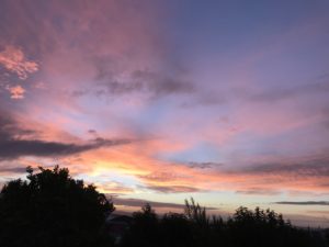 冬にたくさん実った今す~す~に刈り込まれたオレンジの木を西日が通り抜けて 広大なアフリカの草原の景色さながらの長く伸びるオレンジ色の光線が大きな窓から差し込むようになった