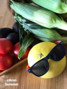 夏の野菜と大柚子を抱えて帰宅