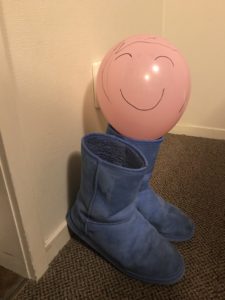 風船にママの顔を描いた